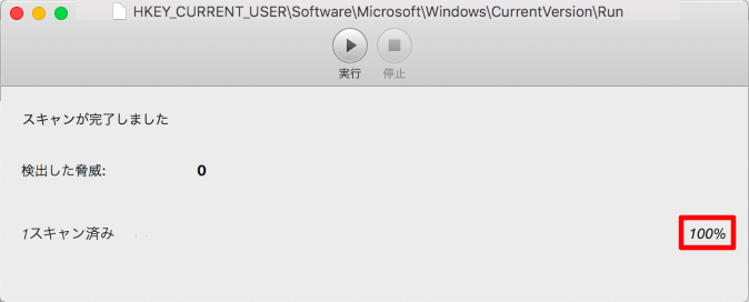④右下に100%と表示されたらスキャン完了です。