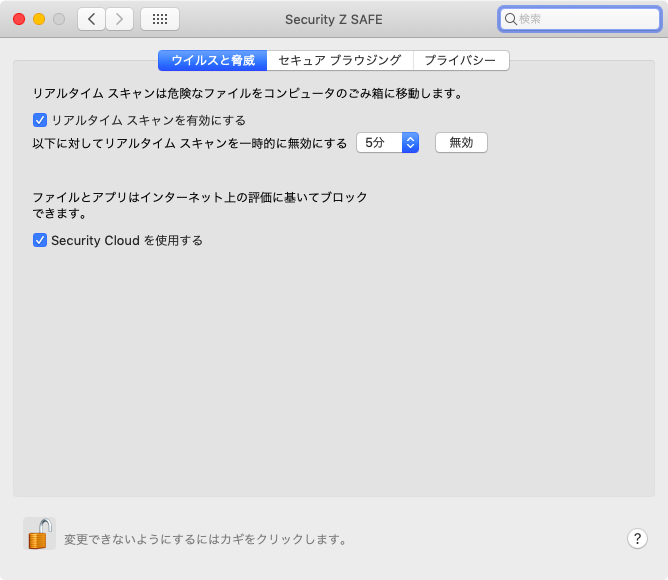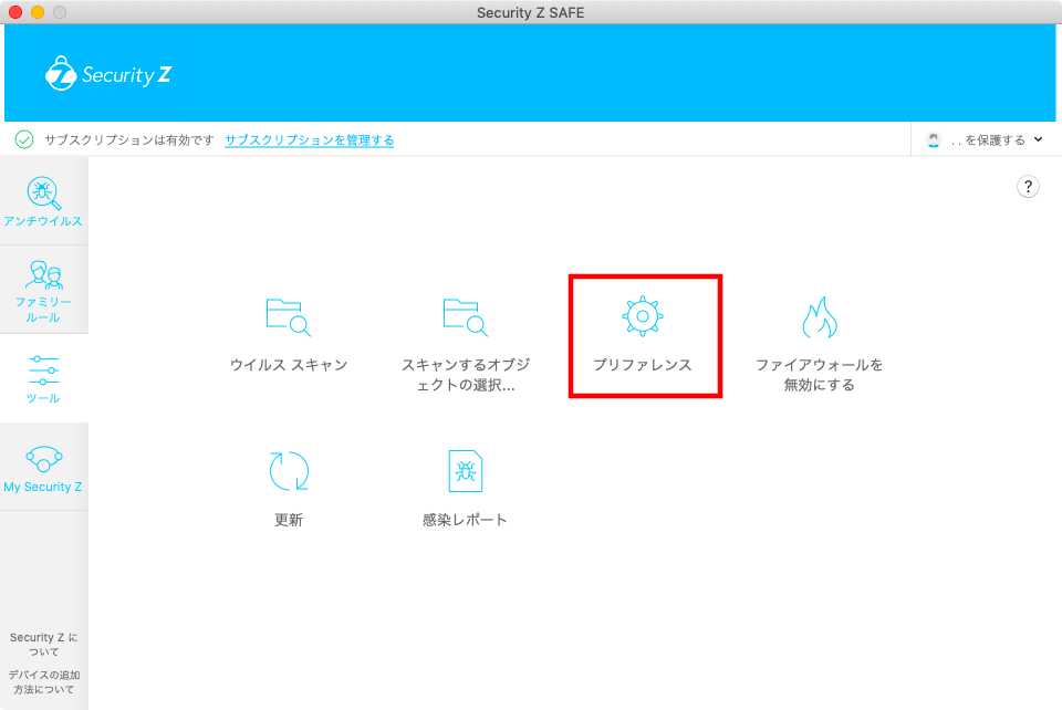 ①Security Z SAFE のステータス画面を表示し、「ツール」をクリックしてください。